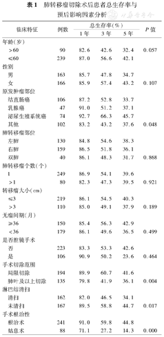 肺转移瘤切除术后患者总生存率与预后影响因素分析