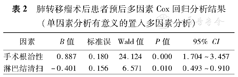 肺转移瘤术后患者预后多因素Cox回归分析结果(单因素分析有意义的置入多因素分析)
