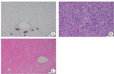 注:A:CK7×200;B:PAS×200;C:铜染色×200