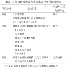对于机械瓣膜置换术后的患者,其血栓栓塞风险分级见表2[4]。对于高危患者,即使服用华法林进行抗凝,年卒中发生率仍然>10%;中危患者在服用华法林抗凝情况下年卒中发生率为5%~10%;低危患者在服用华法林抗凝情况下年卒中发生率低于5%[17]。