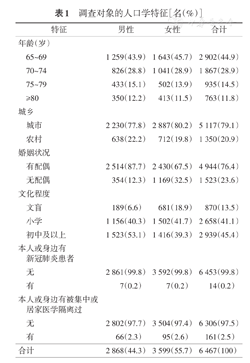 6 467名调查对象中,男2 868名(44.3%),城市地区5 117名(79.1%)。有14名对象本人或身边有人被确诊为新冠肺炎,有161名本人或身边有人被集中或居家医学隔离过。详见表1。
