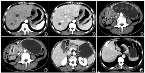 综上所述,CT不仅能显示肿瘤本身的情况,更重要的是可显示周围脏器情况、肿瘤与周围脏器关系以及是否有淋巴结、远处转移。结合形态学、肿瘤密度、强化方式等方面综合阐述病情的变化,可在术前提供更多的诊断信息,在胃癌分化程度、病理分型、TNM分期以及疗效评估等方面发挥重要的作用,具有重要的临床价值。