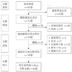 排除标准:(1)会议、摘要、综述、病例个案报道;(2)研究数据不全或研究样本量<30;(3)非相关研究、重复筛选记录或重复研究。