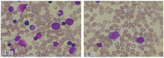 骨髓细胞形态学(见图1):(1)粒系增生减低,原始粒细胞0.5%,早幼粒细胞:0.5%,中性粒细胞中幼粒细胞1.0%,晚幼粒细胞2.0%,杆状核细胞1.0%,分叶核细胞1.0%;(2)红系增生,以中晚幼红细胞为主;(3)淋巴细胞比例明显增高,成熟淋巴细胞64%;(4)单核细胞比例增高,成熟单核细胞3.0%。基本除外药物、血液系统疾病及自身免疫等因素,予行血液和免疫系统疾病基因Panel检测(2018.01由北京海思特临床检验所完成),检出患儿存在ELANE基因一处杂合子突变:exon4:c.G570A,CSF3R及RUNX等基因无突变,患儿父母为正常野生型,考虑为患儿自身体细胞突变产生。