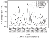 因此结合患儿出生后即反复感染及外周血粒细胞大致呈周期性变化(见图2),并与感染发生时间大致平行,发病间歇期中性粒细胞数目可正常,基因检测提示ELANE基因存一处杂合子突变,骨髓细胞形态学可排除其他恶性血液病,细胞免疫及体液免疫检查大致正常。除此之外,患儿无小头畸形、特殊面容、肌力肌张力异常或心血管、泌尿系统发育异常等血液系统外表现,生长发育及智力等与同龄儿童无明显差别,诊断为:ELANE相关周期性中性粒细胞减少症。建议其动态监测血常规并规律使用rhG-CSF治疗,但其亲属依从性较差,此后仍多次并发感染(见表2),每次入院查血常规均提示中性粒细胞减少,以抗感染及rhG-CSF等治疗后病情均好转,发病间歇期外周血粒细胞可正常。