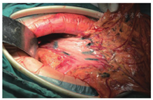 4.淋巴结检出及检测:标本离体后有专人进行淋巴结分拣并分组登记。记录淋巴结数目、最大直径及淋巴结检出时间。纳米碳淋巴示踪组记录黑染淋巴结情况。将所有手术标本及分拣淋巴结全部送病理检查,确定阳性淋巴结数目。