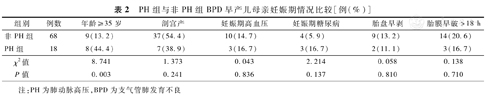 PH组与非PH组BPD早产儿母亲妊娠期情况比较[例(%)]