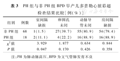 PH组与非PH组BPD早产儿多普勒心脏彩超检查结果比较[例(%)]