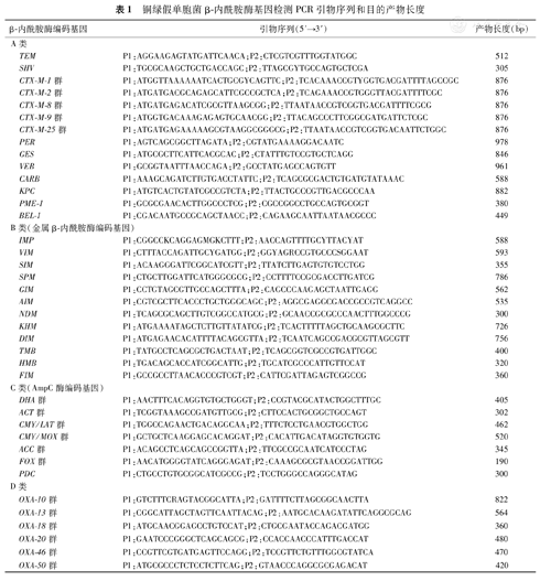 铜绿假单胞菌β-内酰胺酶基因检测PCR引物序列和目的产物长度