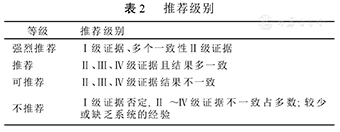 | 推荐 | Ⅱ、Ⅲ、Ⅳ级证据且结果多一致 |