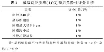 注:星形细胞瘤不包括毛细胞性星形细胞瘤;低危:0~2分;高危:3~5分
