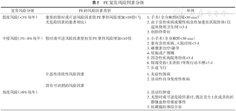 | 复发风险分级 | PE的风险因素类别 | 举例 |
