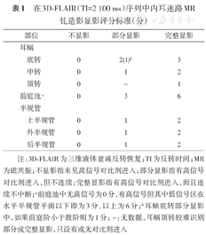 在3D-FLAIR(TI=2 100 ms)序列中内耳迷路MR钆造影显影评分标准(分)