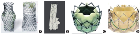 Sapien/Sapien XT (Edwards Lifesciences公司,美国)是设计用于介入下治疗主动脉瓣狭窄的球囊扩张牛心包人工瓣膜,Laule等[31]于2013年首次报道将其用于治疗TR,通过右侧股静脉置管,首先在拟定瓣膜释放区域释放一枚裸支架以提供Sapien/Sapien XT球扩瓣的锚定区,随后在锚定区内释放人工瓣膜(图2C、图2D)。目前共有10例患者接受了此类治疗,但其中9例患者仅在下腔静脉处植入瓣膜,术后30 d死亡率为20%[27]。