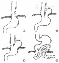 经典的胃底折叠手术方式有Nissen术(或Nissen-Rossatti术)、Thal术、Toupet术、Belsey术等,前3种较为常用并具代表性。对于术式的选择仍有争议,较多推荐360°胃底包绕的Nissen术,但Nissen术后下端食管贲门狭窄的发生率明显提高。因此有学者提出应根据患儿术前症状和检查结果是否存在胃食管反流和其程度选择术式[1]。