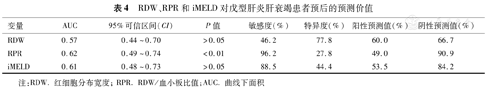 RDW、RPR和iMELD对戊型肝炎肝衰竭患者预后的预测价值