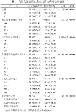 我国艾滋病死亡患者接受抗病毒治疗情况