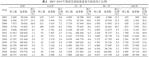 2007-2019年我国艾滋病患者各年龄组死亡比例