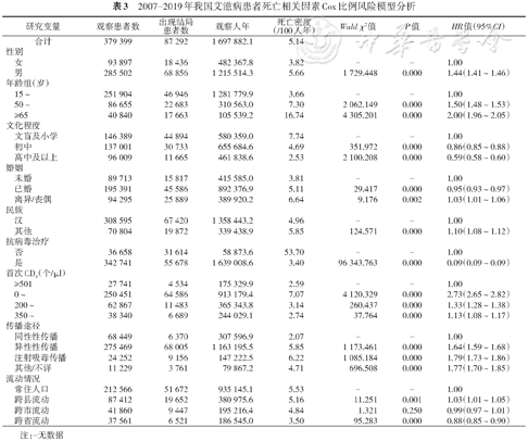 2007-2019年我国艾滋病患者死亡相关因素Cox比例风险模型分析