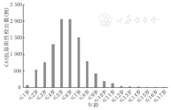 2015年共检测6 237例,其中1 531例GAS抗原检测阳性,阳性率检出率24.55%,2016年全年共检测患儿8 461例,其中2 265例GAS抗原检测阳性,阳性率检出率26.77%;2017年全年共检测患儿9 346例,其中2 424例GAS抗原检测阳性,阳性检出率25.94%;2018年全年共检测患儿10 321例,其中2 385例GAS抗原检测阳性,阳性检出率23.11%;2019年全年共检测患儿10 368例,其中1 419例GAS抗原检测阳性,阳性检出率13.69%;5年共计检测44 733例,其中10 024例GAS抗原检测阳性,阳性检出率22.41%。