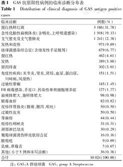 Distribution of clinical diagnosis of GAS antigen positive cases