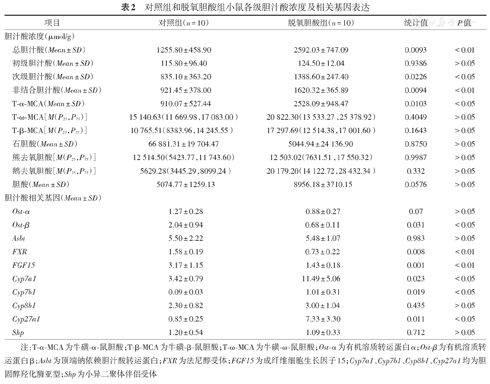 | 次级胆汁酸(Mean ±SD) | 835.10 ± 363.20 | 1388.60 ± 247.40 | 0.0226 | <0.05 | |