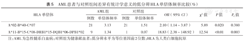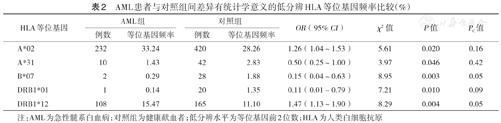 注:AML为急性髓系白血病;对照组为健康献血者;低分辨水平为等位基因前2位数;HLA为人类白细胞抗原