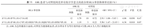 | HLA等位基因 | AML组 | 对照组 | OR(95% CI) | χ2值 | P值 | PC值 | ||