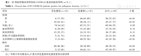 95例病原菌培养阳性的COVID-19患者的临床资料[n(%)]