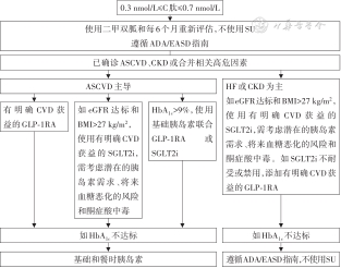 注:LADA为成人隐匿性自身免疫糖尿病;ASCVD为动脉粥样硬化性心血管疾病;CKD为慢性肾脏疾病;SU为磺脲类降糖药;ADA为美国糖尿病学会;EASD为欧洲糖尿病研究协会;HF为心力衰竭;eGFR为估算的肾小球滤过率;BMI为体质指数;CVD为心血管疾病;GLP-1RA为胰高糖素样肽-1受体激动剂;SGLT2i为钠-葡萄糖共转运蛋白2抑制剂;HbA1c为糖化血红蛋白
