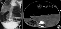 影像学检查:腹部CT示腹盆部明显膨隆,胃腔及部分肠管明显扩张并积气,可见多个阶梯状气液平面,腹腔肠管拥挤,结构显示不清。肝脏大小、形态可,胆囊、胰腺显示不清。脾脏及双肾平扫未见明显异常密度灶。膀胱空虚,内见导尿管影。子宫显示不清。腹盆腔未见明显增大淋巴结及明显积液影(图2)。