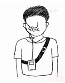 确定pH电极的放置位置后,将受检者面部的分泌物擦拭干净,用胶布将导管固定于面颊部,再将导管绕耳后经颈部固定并下行连接记录仪,最后将记录仪置入专用背包中,嘱受检者佩戴(图2)。