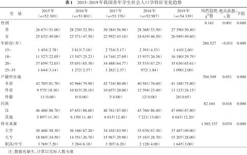 2015-2019年我国青年学生社会人口学特征变化趋势