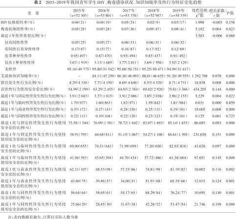 2015-2019年我国青年学生HIV、梅毒感染状况、知识知晓率及性行为特征变化趋势