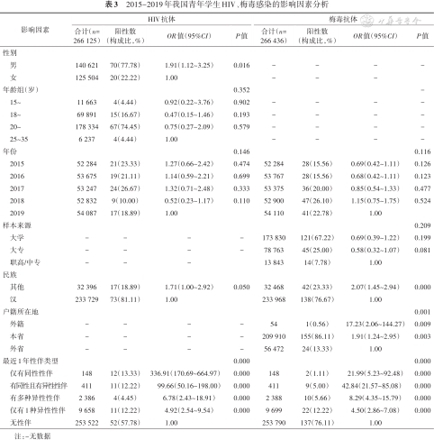 2015-2019年我国青年学生HIV、梅毒感染的影响因素分析