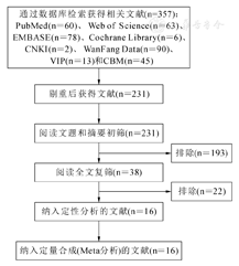 两位作者根据初始检索策略共检索到357篇文献,剔除重复文献后,余231篇文献。再对231篇文献的标题和摘要进行阅读,排除193篇文献;阅读余下38篇文献全文,排除22篇文献,最终16篇文献纳入本次研究。其中,前瞻性病例系列报告1篇[15],回顾性病例系列报告15篇[16,17,18,19,20,21,22,23,24,25,26,27,28,29,30]。总计254例研究对象,所有文献均报道手术类型为腔镜下SCM离断松解术。文献筛选流程及结果见图1。