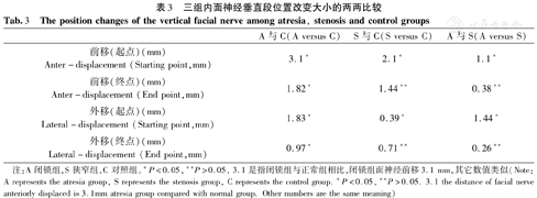 The position changes of the vertical facial nerve among atresia, stenosis and control groups