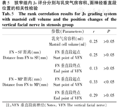The rank correlation results for Js grading system with mastoid cell volume and the position changes of the vertical facial nerve in stenosis group