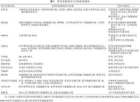 常见皮肤病合并EB病毒感染的相关表现与治疗预后见表1。
