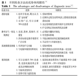 | 鼻呼出气一氧化氮测定 | 1.无创、简单、易操作、可重复 | 1.必须除外囊性纤维化 |