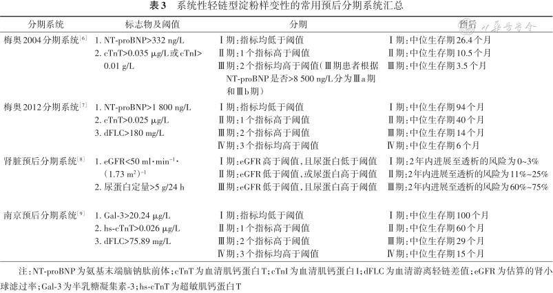系统性轻链型淀粉样变性的常用预后分期系统汇总