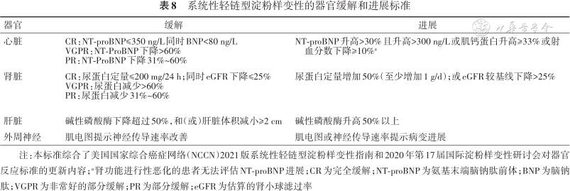 系统性轻链型淀粉样变性的器官缓解和进展标准