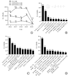 中文文献来自中国知网、万方数据中的期刊数据库,英文文献来自Web of Science核心数据库,时间范围2016年1月1日至2020年6月18日。从年代分布、通信作者、国家/机构分布、期刊分布状况等方面进行统计分析和比较;结合h指数、影响因子来评估论文的相对质量;通过CiteSpace进行国家/机构合作共现分析;在泛读基础上,统计文献的研究主题词频,进而结合CiteSpace进行共被引聚类分析,得到研究热点前沿。