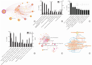 主题词频最多的有Kasai手术(n=232),肝移植(n=217),纤维化(n=187)、诊断(n=154)、存活率(n=98)(表4)。通过CiteSpace软件将文献共被引可视化,并将共被引网络进行聚类,得到了11组研究热点前沿,如腹腔镜肝门空肠吻合术、Toll样受体、循环微小RNA、5年自体肝生存率等,在病因、诊断、手术、并发症、预后各方面均有涉及(图2F)。
