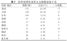 世界范围发表英文文献数量前十名