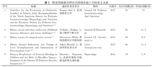 胆道闭锁相关研究引用频次前5位的英文文献