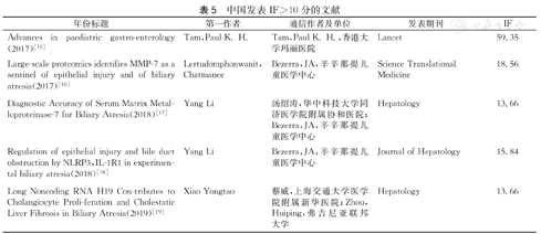 | Large-scale proteomics identifies MMP-7 as a sentinel of epithelial injury and of biliary atresia(2017)[16] | Lertudomphonwanit,Chatmanee | Bezerra,JA,辛辛那提儿童医学中心 | Science Translational Medicine | 18.56 |