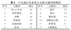 主题词频最高的有Kasai手术(n=44)、肝纤维化(n=40)、诊断(n=38)、肝移植(n=30)、发病机制(n=24)。在诊断方面,关于超声诊断的文献仍占多数(n=15)(表6)。