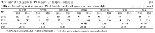 国产吸入变应原制剂SPT和血清sIgE检测的一致性比较 (例)