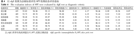 The evaluation indexes of SPT were evaluated by sIgE test as diagnostic criteria